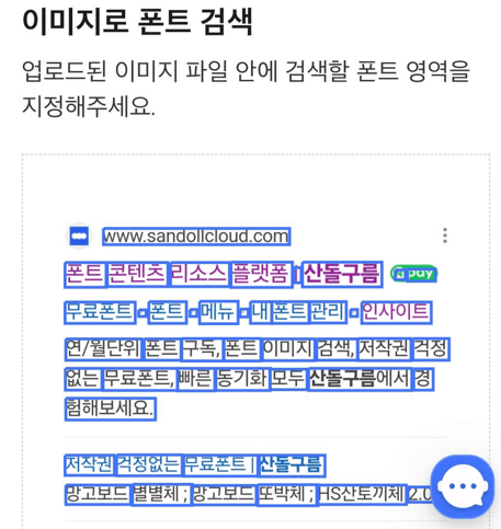 글꼴이 포한된 이미지를 등록하게 되면 아래와 같은 화면으로 이동하게 됩니다. 이 화면에서 검색할 글꼴 영역을 선택합니다.